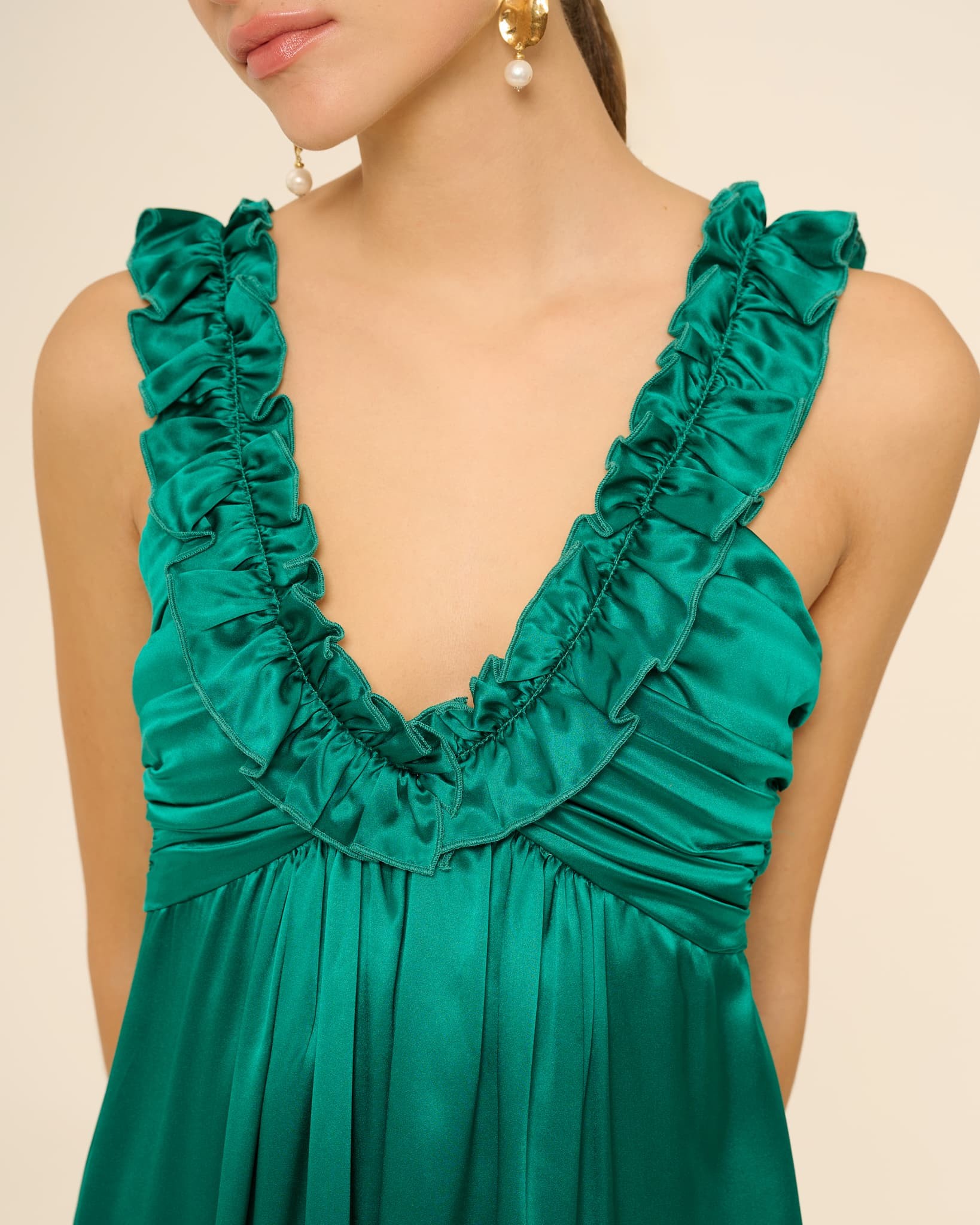 Emerald-colored silk satin