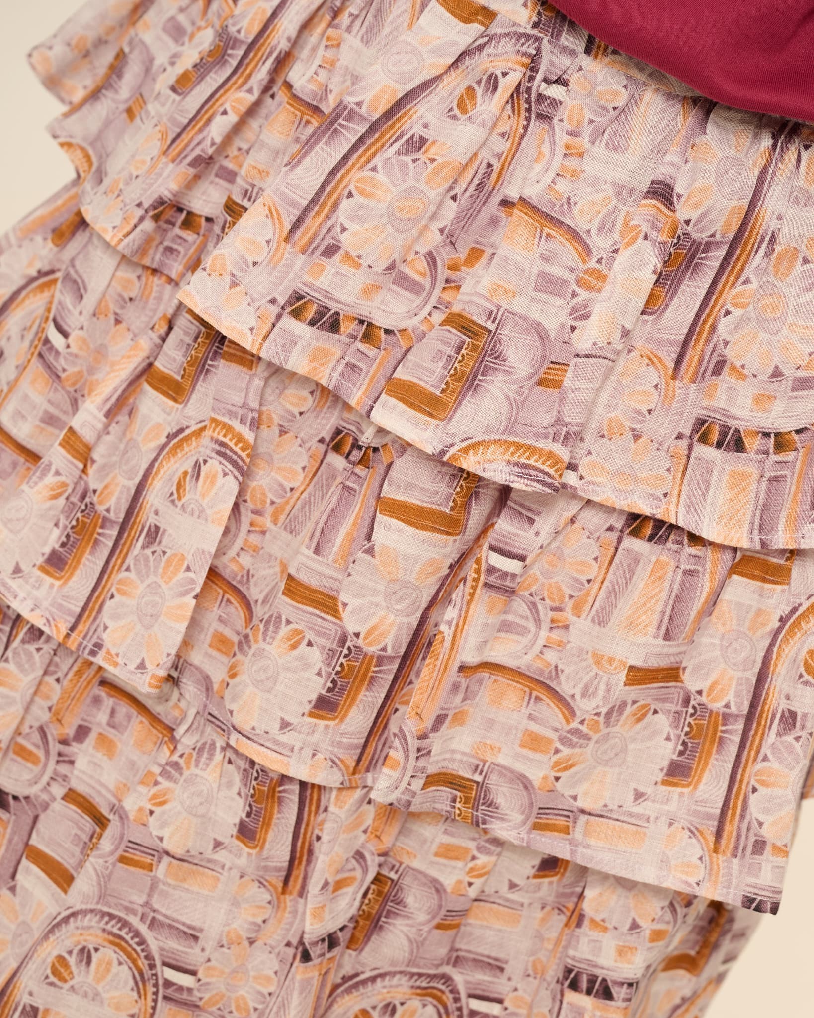 ⁃ 5 gathered ruffles of varying heights