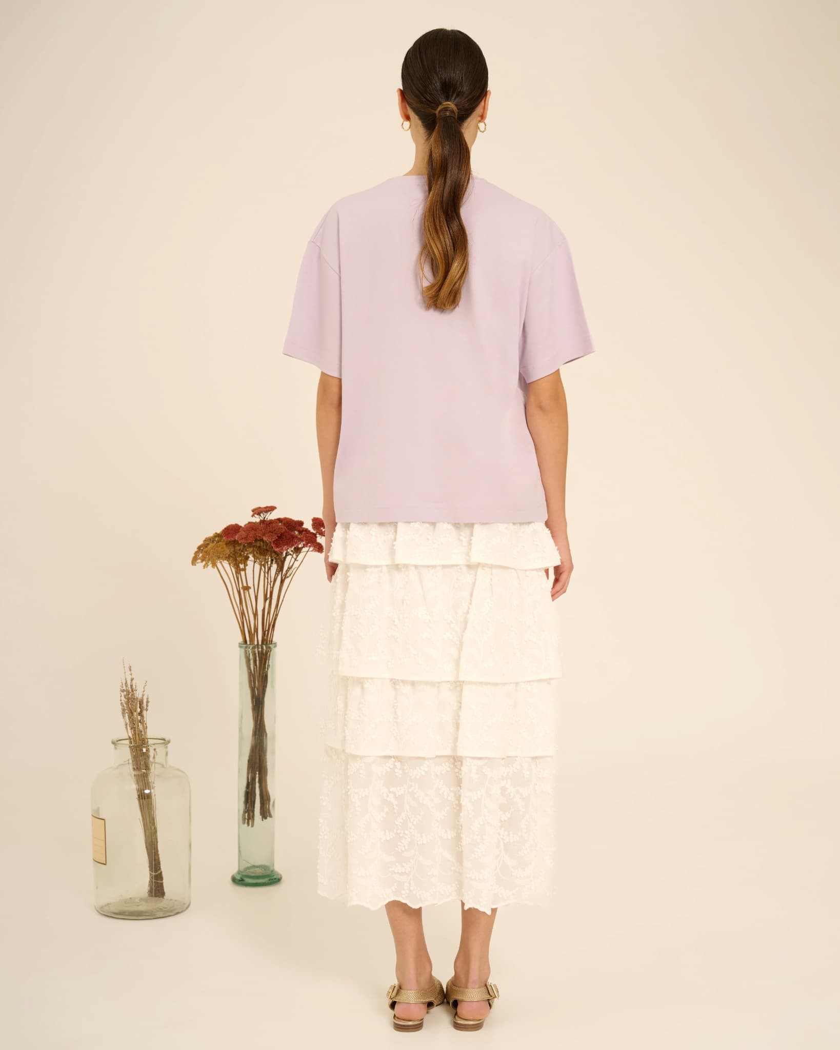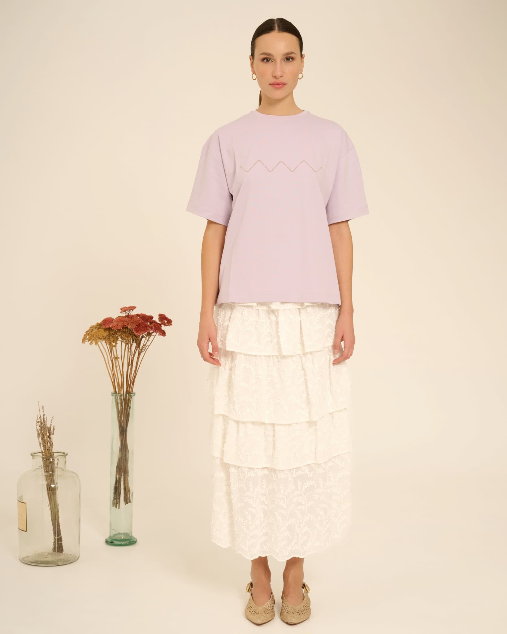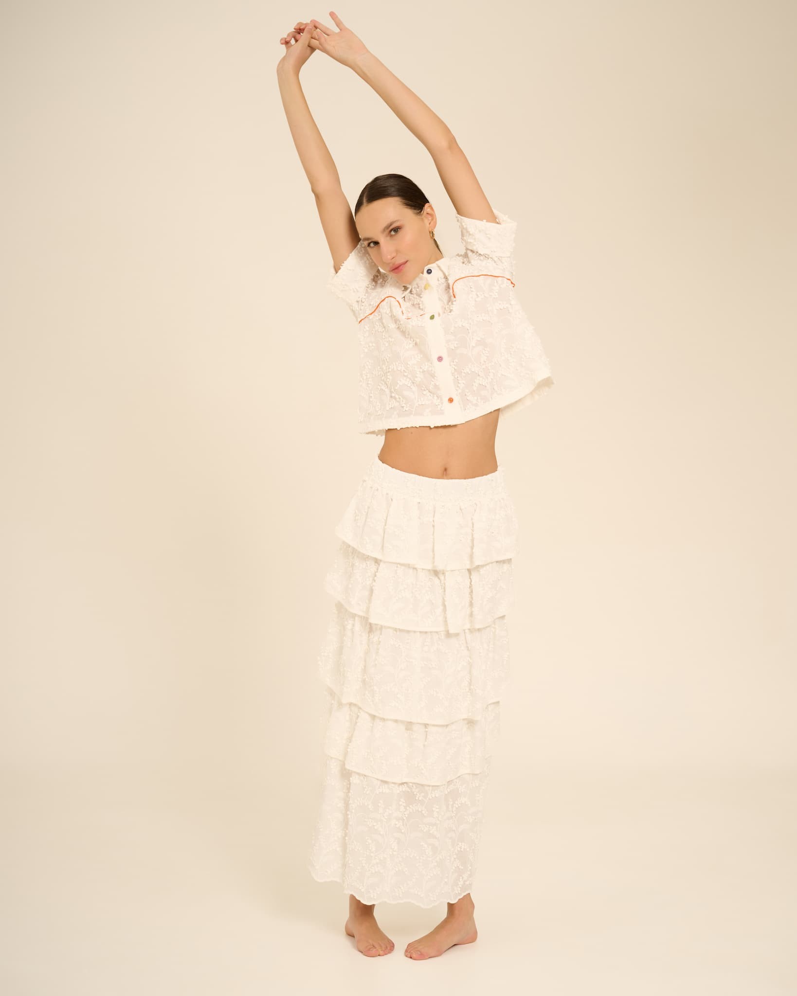 Domiziana fully embodies the essence of the cosmopolitan gypsy. It's a gathered skirt with an elastic waistband, perfect for all your casual occasions, for your travels around the world, for evenings with friends at the beach or in the city. Wear it with sandals and a t-shirt and you'll be lively and comfortable all day long, or with a bon-ton blouse for a more refined look.